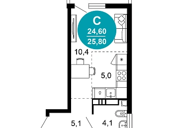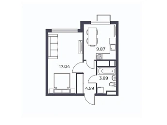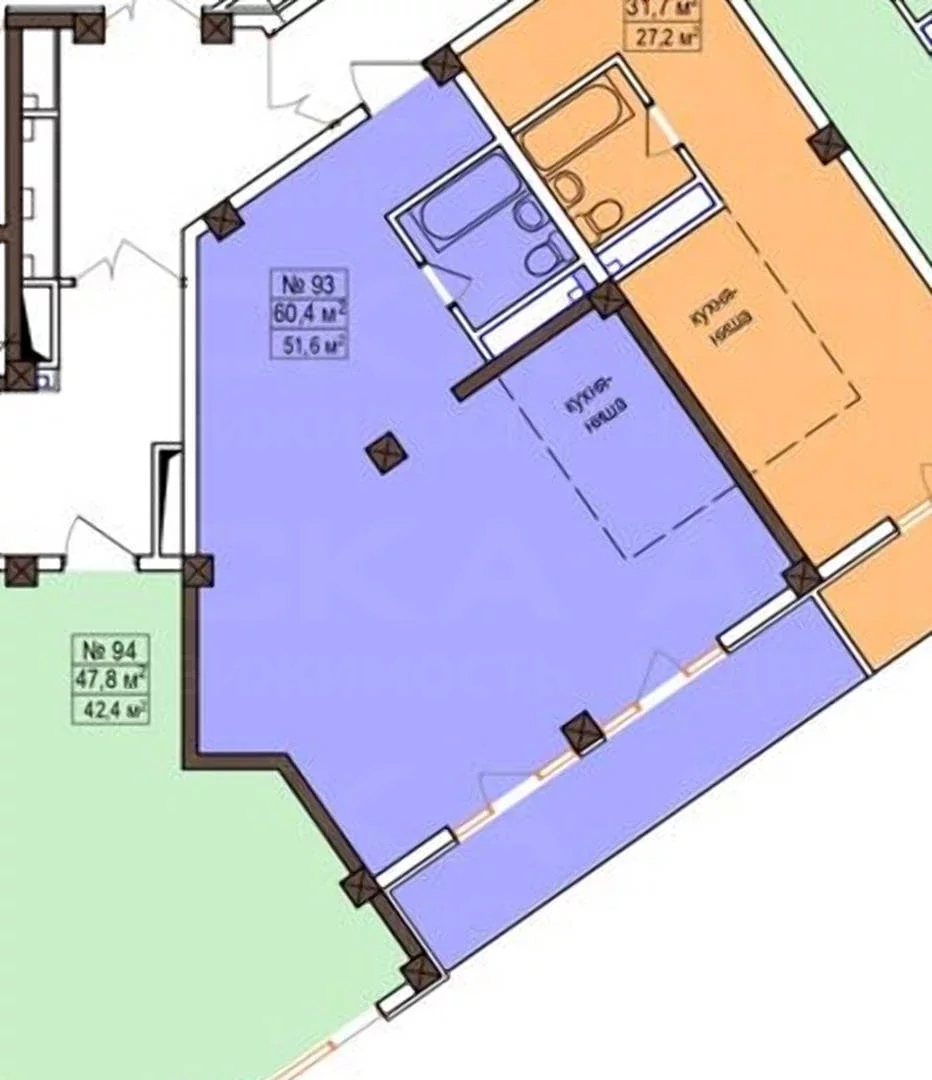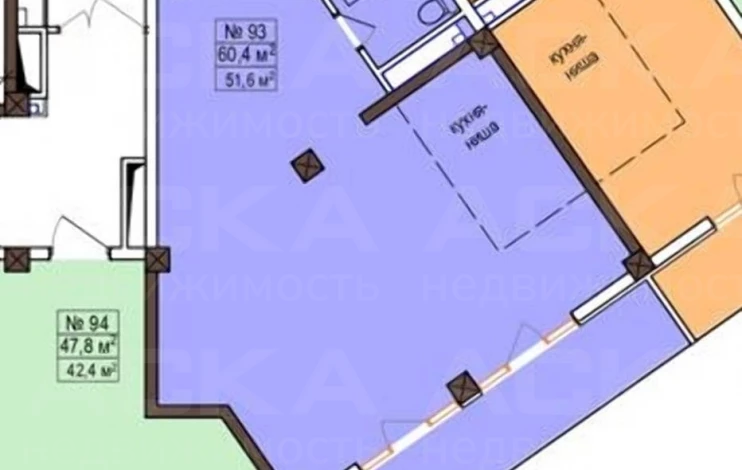 Квартира однокомнатная S 47.8 м² на 8 этаже, Лот № 172670