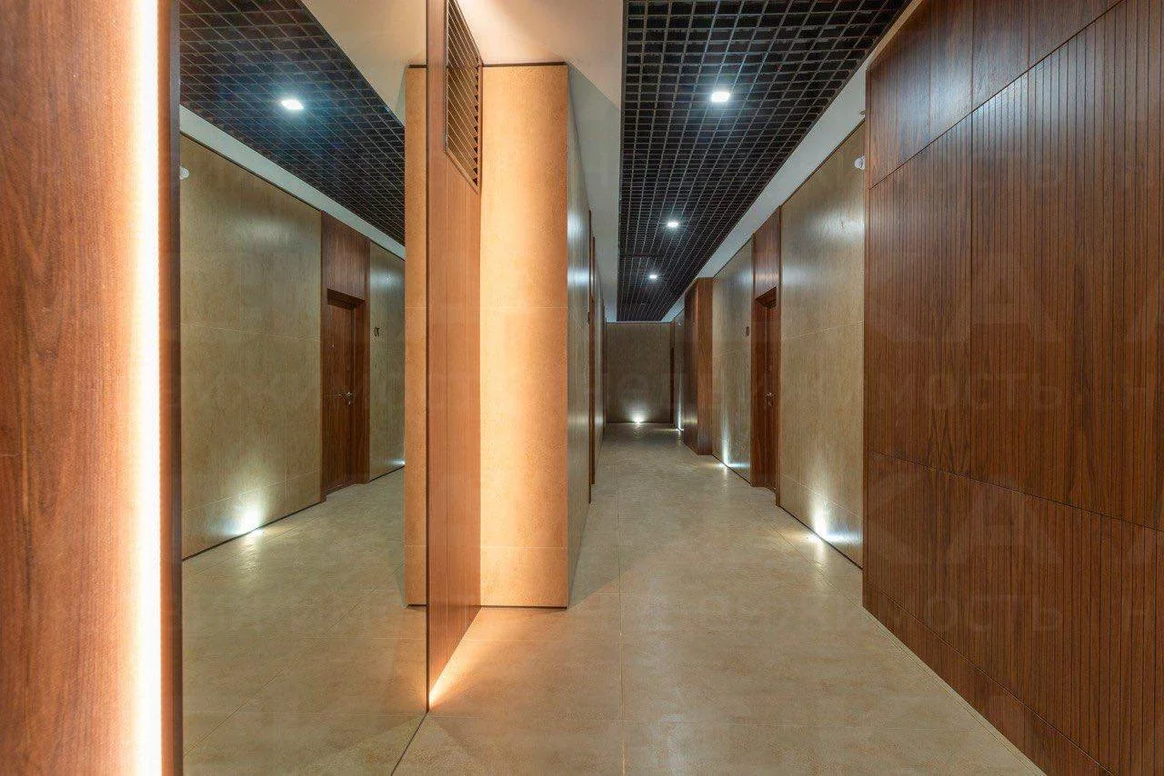 На первом этаже расположены апартаменты с ремонтом и мебелью. Со 2 по 9 этажи предлагаются квартиры в черновой отделке.