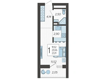 Квартира однокомнатная S 34.6 м² на 9 этаже, Лот № 186788