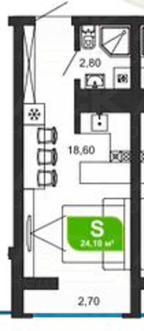 Квартира однокомнатная S 24.1 м² на 15 этаже, Лот № 167932