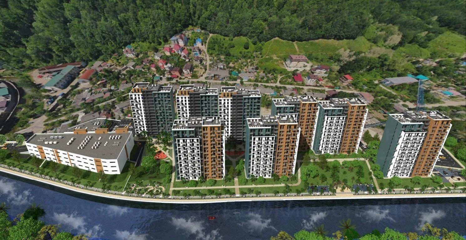 Жилой комплекс располагается вдоль долины реки Восточный Дагомыс в зеленой и экологической зоне с видом на чайные плантации, море и горы, с удобной транспортной развязкой.