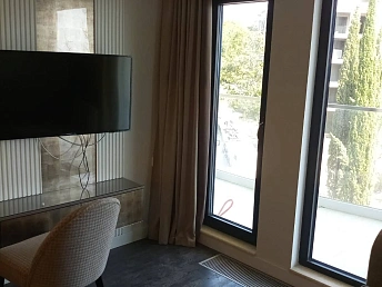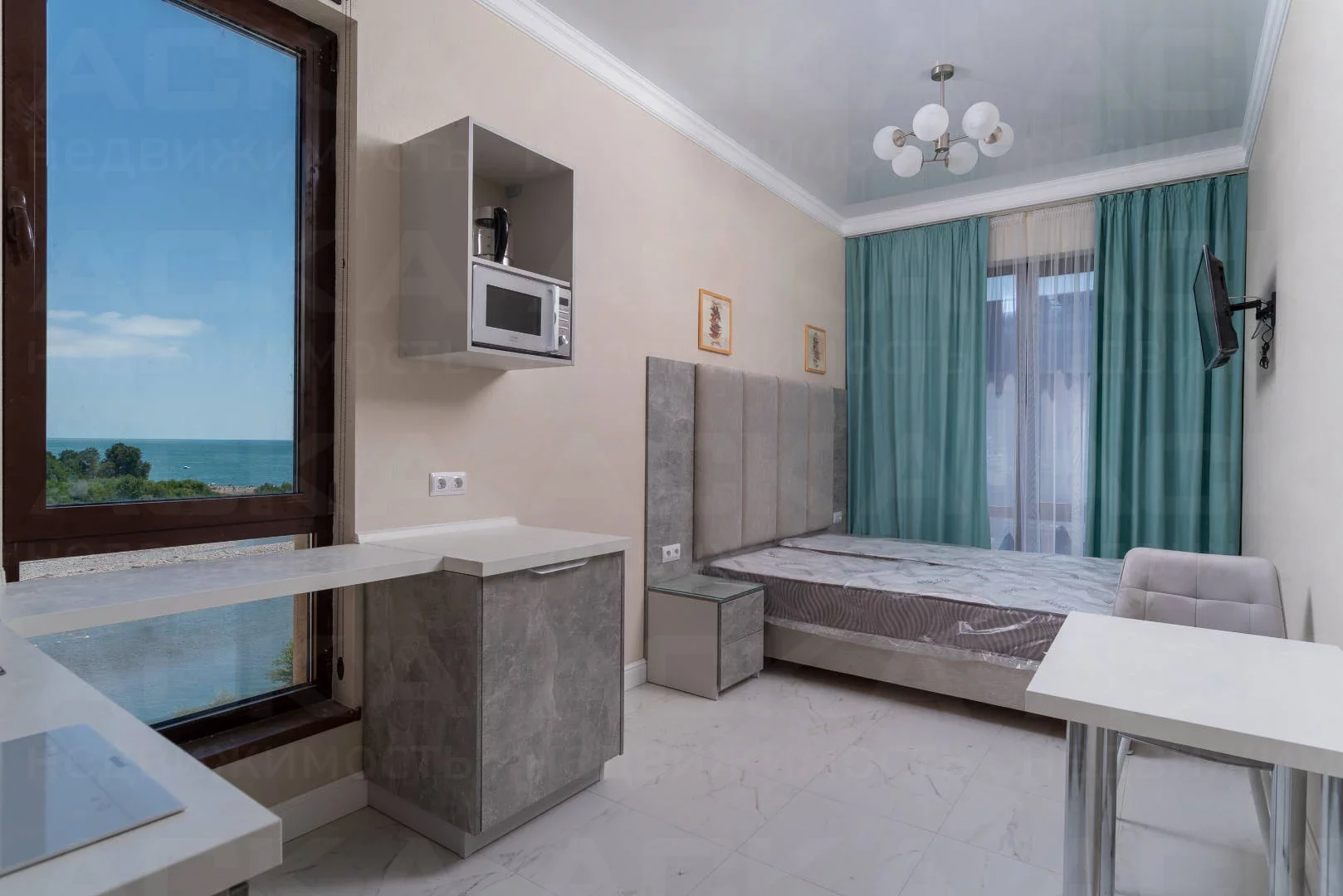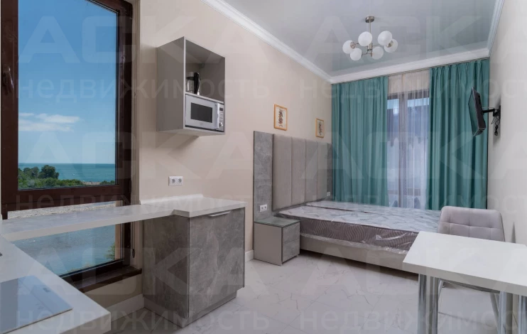 Апартаменты площадью 31,4 кв.м. имеют квадратную форму свободной планировки с балконом обеспечивающим завораживающий вид на горы на третьем этаже корпуса №1.