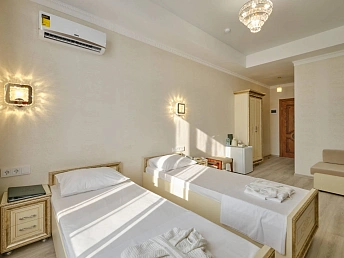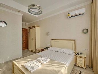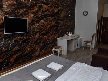 Ремонт выполнен из качественных и дорогостоящих материалов. Мебель изготовлена эксклюзивно и рассчитано на долгую эксплуатацию. АК располагается в самом центре города Сочи, рядом с ж/д вокзалом.