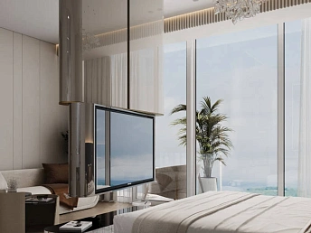 Квартира без ремонта и перегородок, что даёт возможность обустроить пространство по своему вкусу. С 10 этажа открывается шикарный панорамный вид на море и горы.