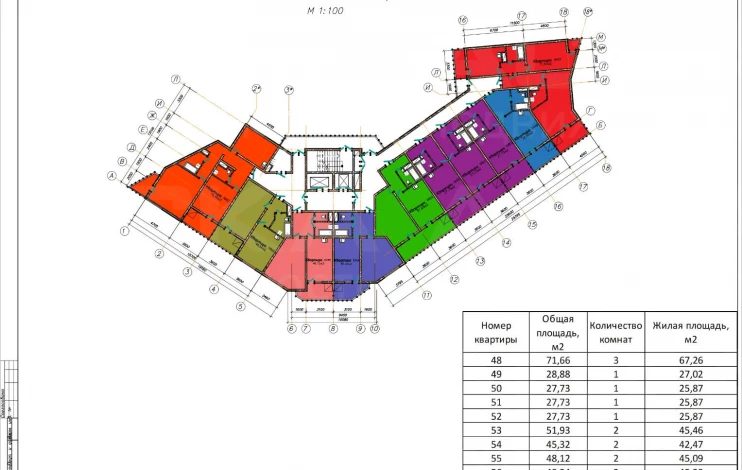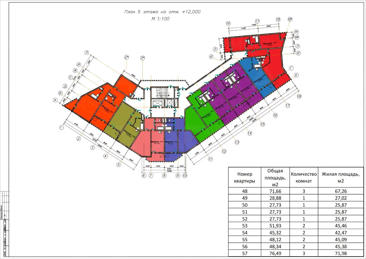 Квартира трехкомнатная S 71.66 м² на 5 эт., ремонт Под отделку, р-он Лазаревский, Лот № 165715