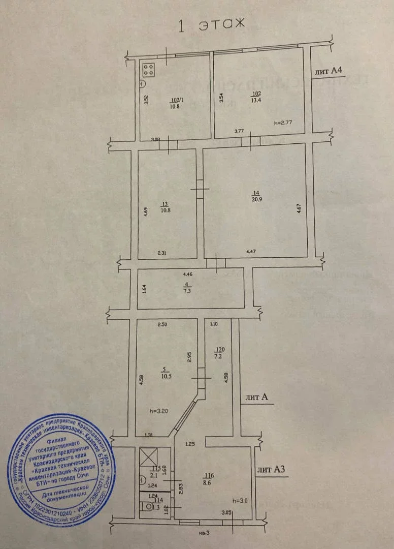 Квартира трехкомнатная S 100 м² на 1 эт., ремонт Евростандарт, р-он Лазаревский