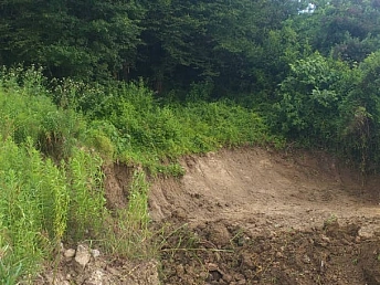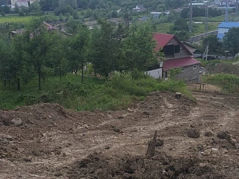 Участок граничит с лесом и имеет два жилых вагончика. Один из них оформлен как жилой дом площадью 39 кв.м. с адресом и пропиской. Также на участке имеется баня. Под основной дом выполнен цоколь на сваях размером 6×8 метров из аргелита, с отводом дренажа. На участке есть свет, вода, газ по границе. Много насаждений плодоносящих деревьев на участке. Участок граничит с лесом, соседи только с одной стороны. Межевание выполнено, все документы на землю и дом полностью готовы к продаже. Один собственник, обременений нет.